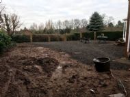 Wheel barrow 40 ton of MOT hardcore into the garden to create a good foundation.