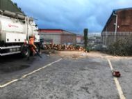 30 FT Ash tree reduced to brash and logs. Area being blown off from debris.
